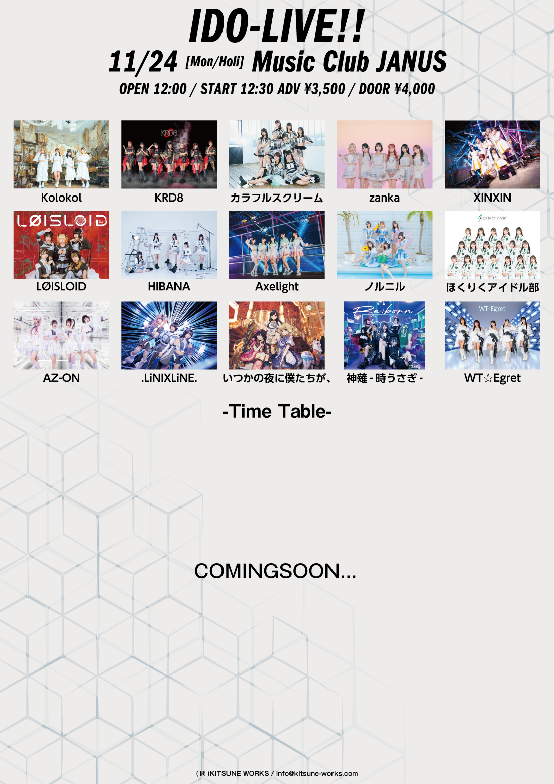 - Axelight / Kolokol / カラフルスクリーム / AZ-ON / .LiNIXLiNE. / zanka / HIBANA / 神薙-時うさぎ- / ノルニル / KRD8 / WT☆Egret / LØISLOID / いつかの夜に僕たちが、 / XINXIN / ほくりくアイドル部