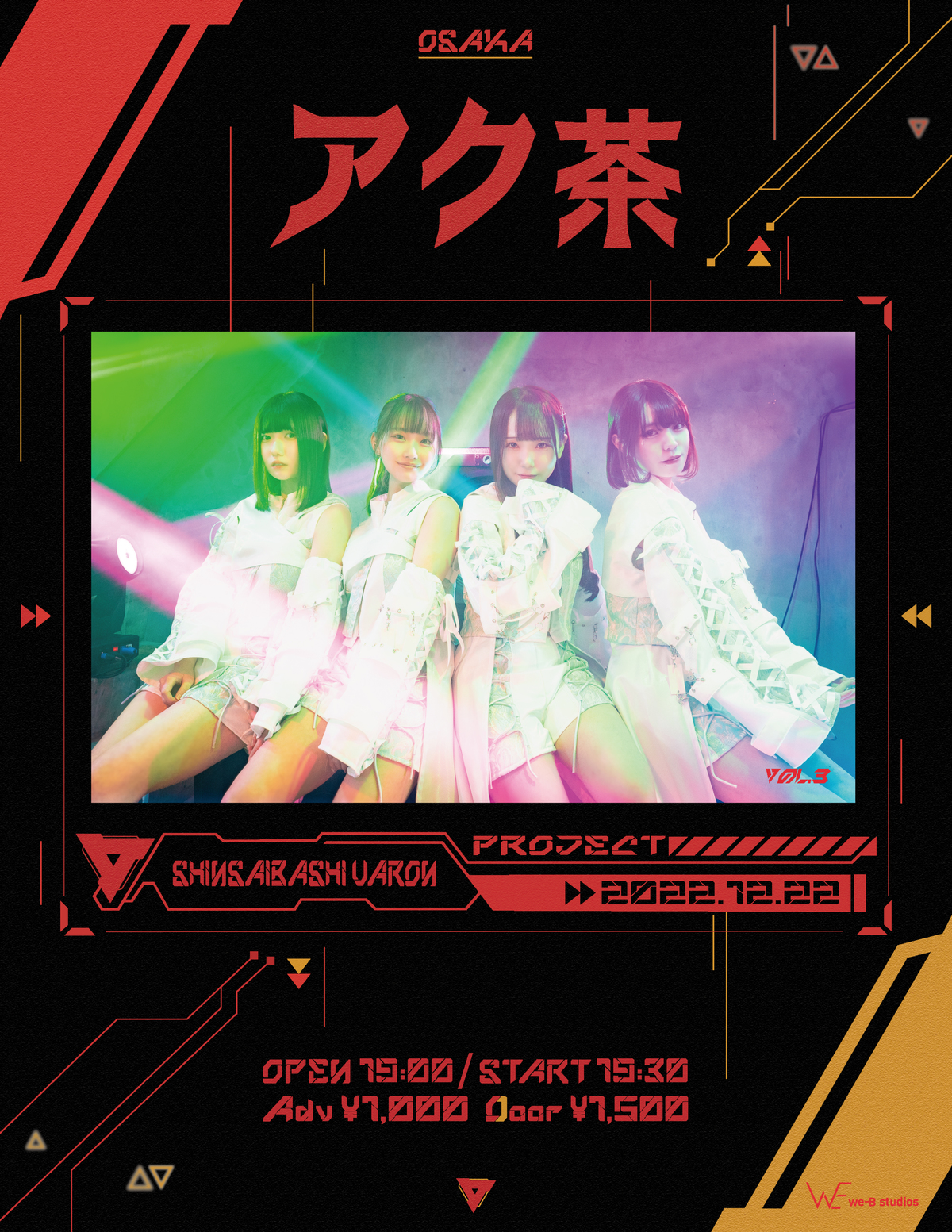 Schedule BACK TO LIST 2022.12.22[Thu] 心斎橋VARON アク茶 【チケット】 https://t.livepocket.jp/e/axlt_tea 前売りチケット:¥1,000 一般販売:2022/11/26(土)21:00~2022/12/21(水)23:59 VENUE 心斎橋VARON 大阪府大阪市中央区南船場4-4-10心斎橋辰野ビルB1 TIME 開場 / 19:00 開演 / 19:30 TICKET 前売 ¥ 1,000 / 当日 ¥ 1,500 ACT Axelight