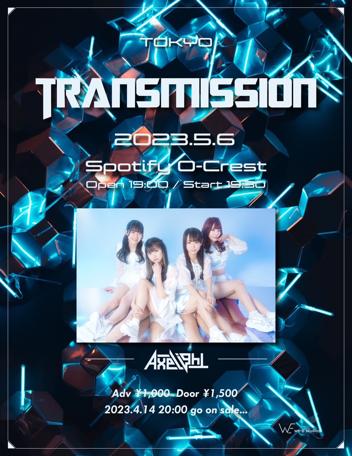 Schedule BACK TO LIST 2023.5.6[Sat] Spotify O-Crest TRANSMISSION 【チケット】 https://eplus.jp/axelight-0506/ 前売りチケット¥1,500 一般販売:2023/4/14(金)20:00〜2023/5/5(金)23:59 VENUE Spotify O-Crest 東京都渋谷区道玄坂2-14-8 TIME 開場 / 19:00 開演 / 19:30 TICKET 前売 ¥ 1,000 / 当日 ¥ 1,500 ACT Axelight