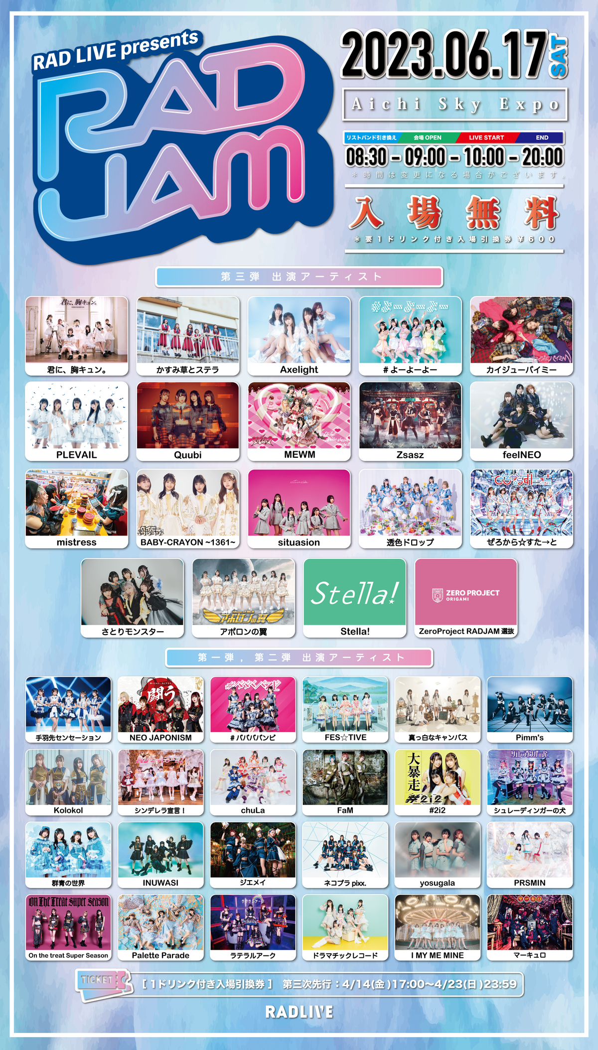 - Axelight / #ババババンビ / FES☆TIVE / NEO JAPONISM / 真っ白なキャンバス / 手羽先センセーション / #2i2 / chuLa / FaM / I MY ME MINE / INUWASI / Kolokol / On the treat Super Season / Palette ParadeB19 / Pimm's / PRSMIN / yosugala / ジエメイ / シュレーディンガーの犬 / シンデレラ宣言! / ドラマチックレコード / ネコプラpixx. / マーキュロ / ラテラルアーク / 群青の世界 / #よーよーよー / BABY-CRAYON ~1361~ / feelNEO / MEWM / mistress / PLEVAIL / Quubi / situasion / Stella! / ZeroProject RADJAM選抜 / Zsasz / アポロンの翼 / カイジューバイミー / かすみ草とステラ / さとりモンスター / ぜろから☆すた→と / 君に、胸キュン。 / 透色ドロップ