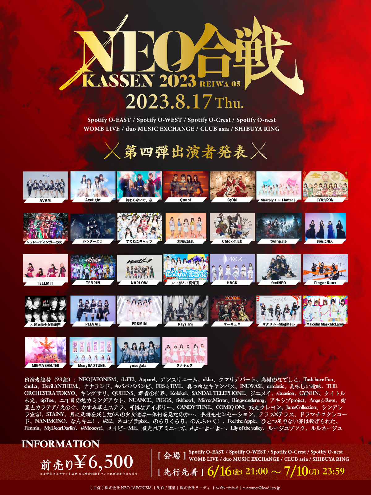 - Axelight / NEO JAPONISM / iLiFE! / Appare! / アンスリューム / ukka / クマリデパート / 高嶺のなでしこ / Task have Fun / chuLa / Devil ANTHEM. / ナナランド / #ババババンビ / FES☆TIVE / 真っ白なキャンバス / INUWASI / airattic / 美味しい曖昧 / THE ORCHESTRA TOKYO / キングサリ / QUEENS / 群青の世界 / Kolokol / SANDAL TELEPHONE / ジ エメイ / situasion / CYNHN / タイトル未定 / tipToe. / 二丁目の魁カミングアウト / NUANCE / PIGGS / fishbowl / Mirror,Mirror / Ringwanderung / アキシブproject / Ange☆Reve / 衛星とカラテラ / えのぐ / かすみ草とステラ / 可憐なアイボリー / CANDY TUNE / COMIQ ON! / 疾走クレヨン / JamsCollection / シンデレラ宣言! / STAiNY / 月に足跡を残した6人の少女達は一体何を見たのか... / 手羽先センセーション / テラス×テラス / ドラマチックレコード / NANIMONO / なんキニ! / #2i2 / ネコプラpixx. / のらりくらり / のんふぃく! / Peel the Apple / ひとつ足りない賽は投げられた / Pimm's / MyDearDarlin' / #Mooove! / メイビーME / 夜光性アミューズ / #よーよーよー / Lily of the valley / ルージュブック / ルルネージュ / AVAM / 終わらないで、夜 / Quubi / C;ON / Sharply♯ × Flutter♭ / JYA☆PON / シュレーディンガーの犬 / シンダーエラ / すてねこキャッツ / 太陽と踊れ / Chick-flick / twinpale / 月夜に唄え / TELLMIT / TENRIN / NARLOW / にっぽん!真骨頂 / HACK / feelNEO / Finger Runs / ×純文学少女歌劇団 / PLEVAIL / PRSMIN / Payrin's / マーキュロ / マグメル-MagMell- / Malcolm Mask McLaren / MIGMA SHELTER / Merry BAD TUNE. / yosugala / ラナキュラ and more