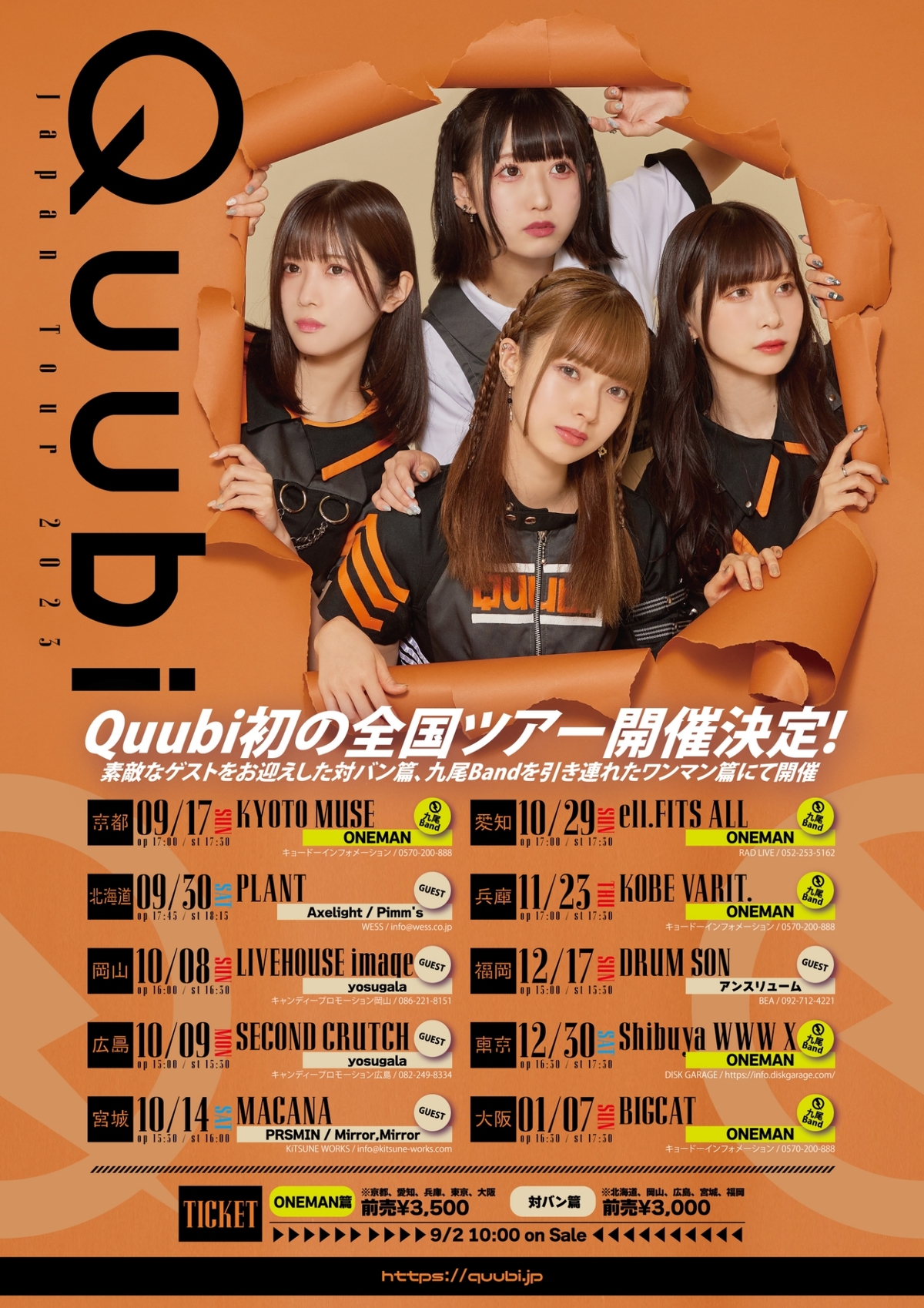Schedule BACK TO LIST 2023.9.30[Sat] 札幌PLANT Quubi Japan Tour 2023 【チケット】 https://eplus.jp/quubi_japan 前売りチケット¥3,000 オフィシャル2次抽選先行:2023/7/25(火)21:00〜2023/8/13(日)23:59 VENUE 札幌PLANT 北海道札幌市北区北23条西4丁目2-39 第42ビッグビルⅠ 2F TIME 開場 / 17:45 開演 / 18:15 TICKET 前売 ¥ 3,000 / 当日 ¥ 4,000 ACT Axelight / Quubi / Pimm's