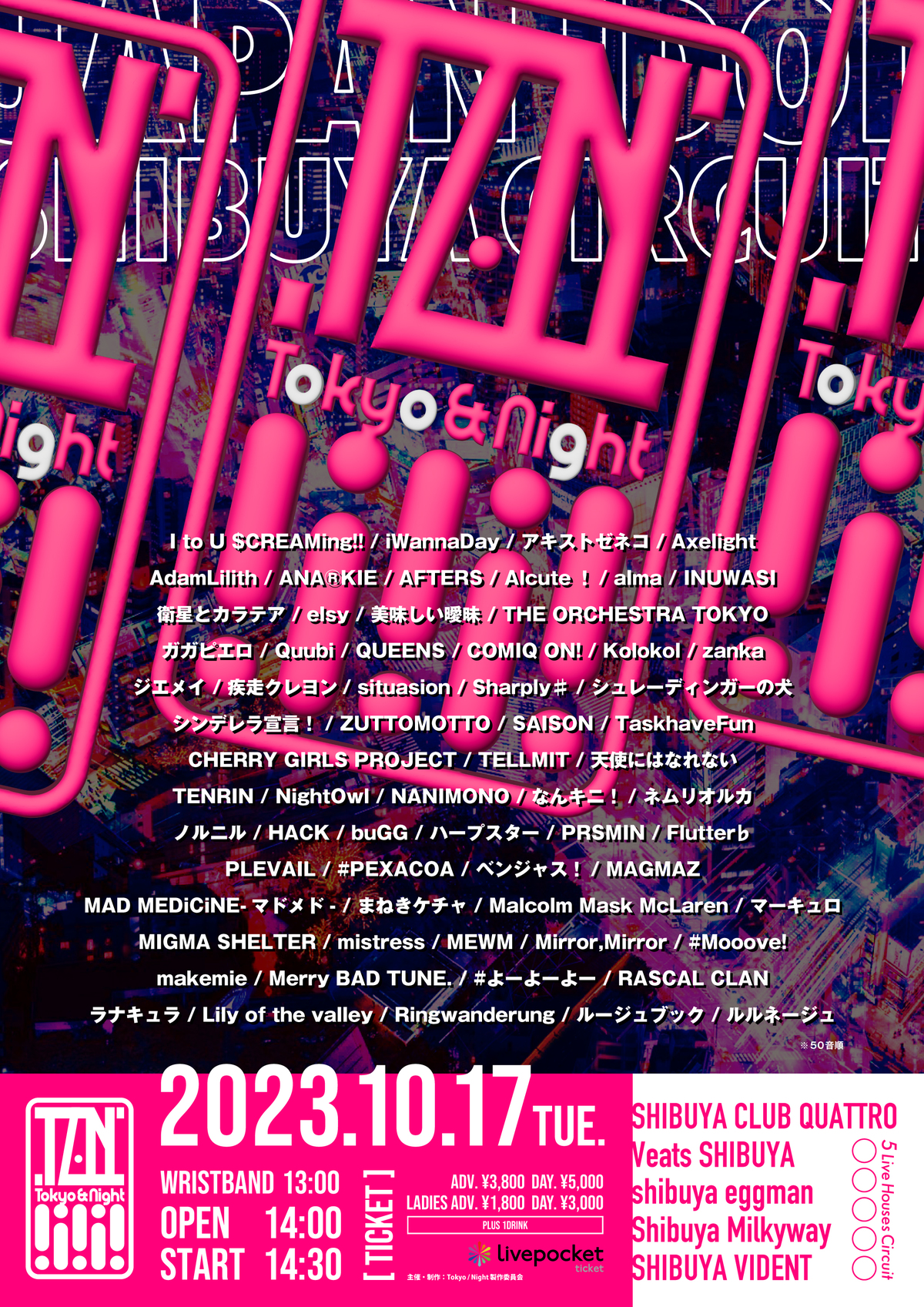 SHIBUYA CLUB QUATTRO / Veats SHIBUYA / shibuya eggman / Shibuya Milkyway / SHIBUYA VIDENT