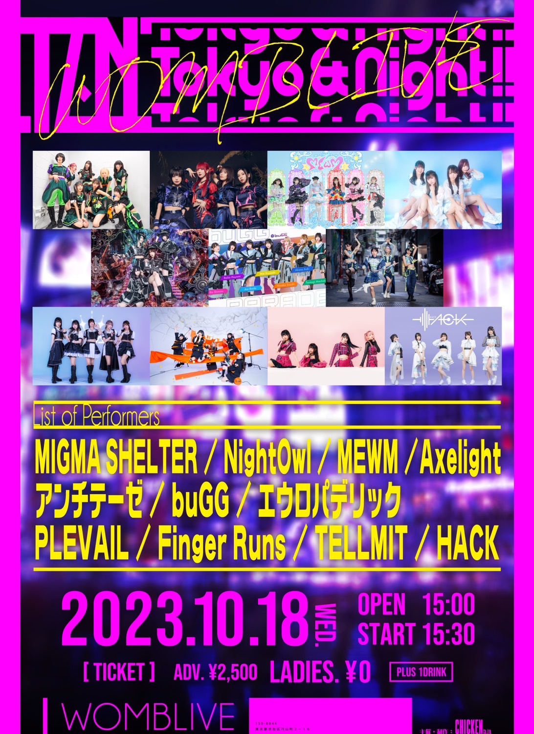 - Axelight / MIGMA SHELTER / NightOwl / MEWM / アンチテーゼ / buGG / エウロパデリック / PLEVAIL / Finger Runs / TELLMIT / HACK