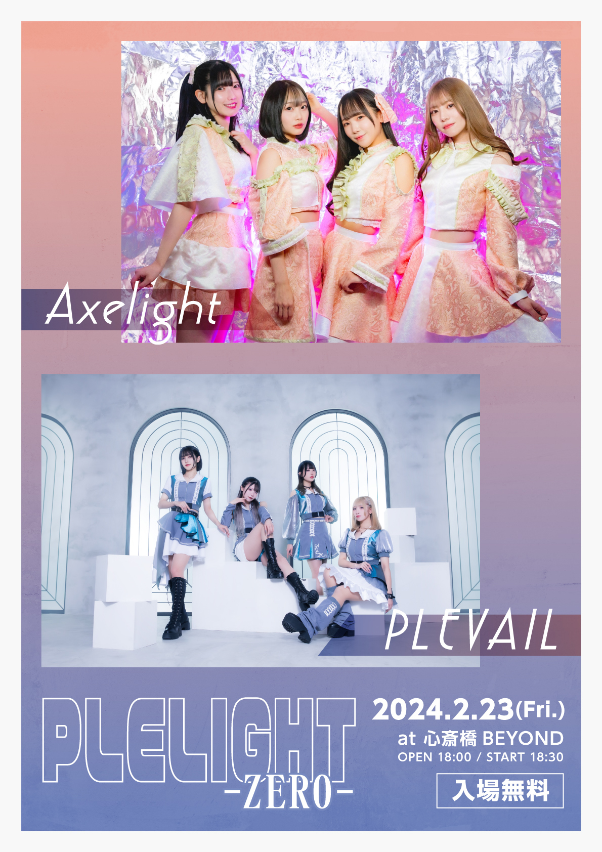 Schedule BACK TO LIST 2024.2.23[Fri] 心斎橋BEYOND PLELIGHT-ZERO- 【チケット】 https://t.livepocket.jp/e/plelight2 入場無料 一般販売:2024/2/7(水)21:00〜2024/2/23(金)18:30 ※1ドリンク代事前徴収 VENUE 心斎橋BEYOND 大阪府大阪市中央区西心斎橋2丁目18−9 リアライズ西心斎橋ビル B2F TIME 開場 / 18:00 開演 / 18:30 TICKET 当日 未定 ACT Axelight / PLEVAIL