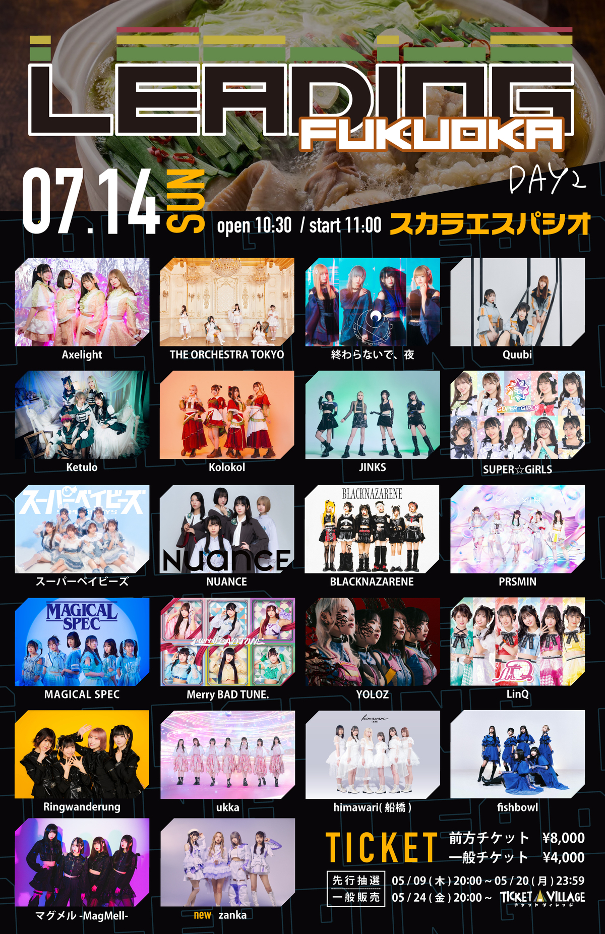 - Axelight / THE ORCHESTRA TOKYO / 終わらないで、夜 / Quubi / Ketulo / Kolokol / JINKS / SUPER☆GiRLS / スーパーベイビーズ / NUANCE / BLACKNAZARENE / PRSMIN / MAGICAL SPEC / Merry BAD TUNE. / YOLOZ / LinQ / Ringwanderung / ukka / himawari(船橋) / fishbowl / マグメル-MagMell- / zanka